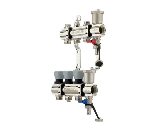 Коллекторный блок с рег. клапанами в сборе 1" х 3/4"ш ( 3 вых.)