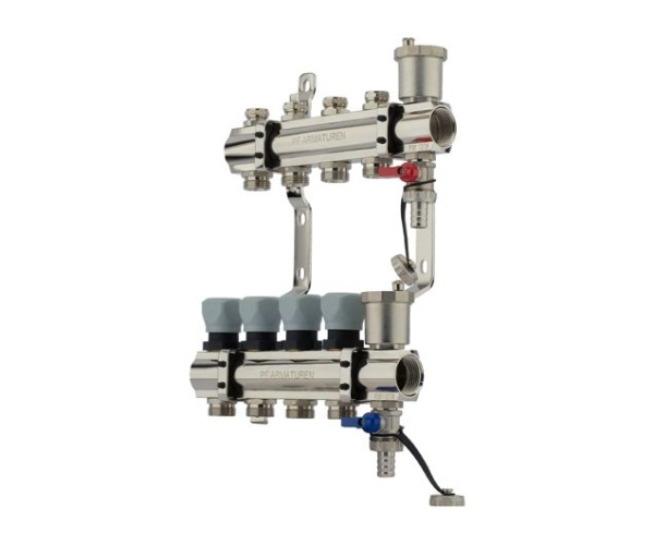 Коллекторный блок с рег. клапанами в сборе 1" х 3/4"ш ( 4 вых.)