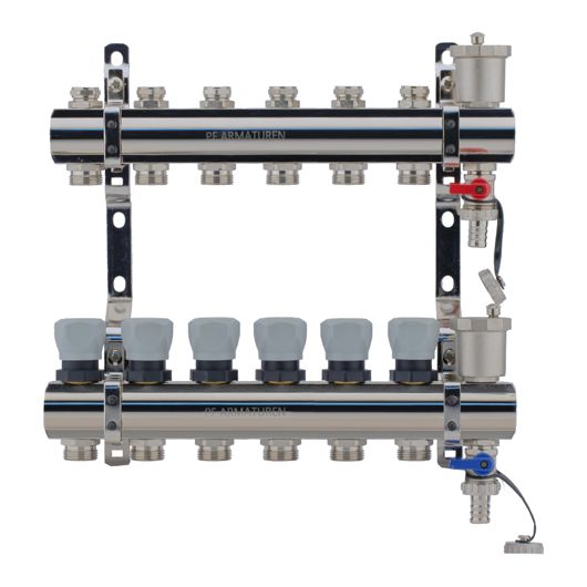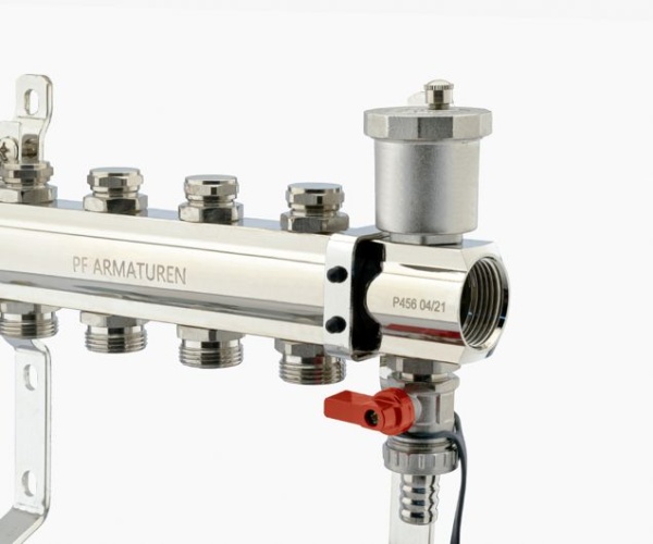 Коллекторная группа PROFACTOR® PF MB 804 используется в системах водоснабжения, радиаторного или напольного отопления для распределения и регулирования рабочей среды в системе.