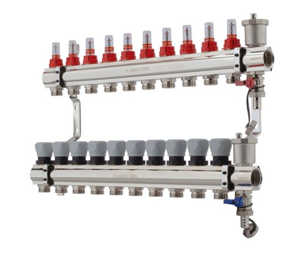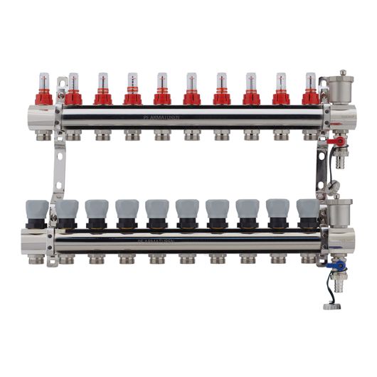 Коллекторный блок в сборе с расходомерами 1" х 3/4"ш (10 вых.)