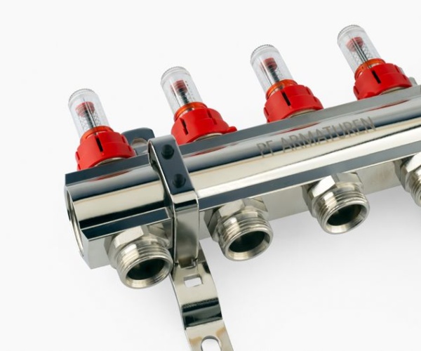 Коллекторная группа PROFACTOR® PF MB 802 используется в системах водоснабжения, радиаторного или напольного отопления для распределения и регулирования рабочей среды в системе.