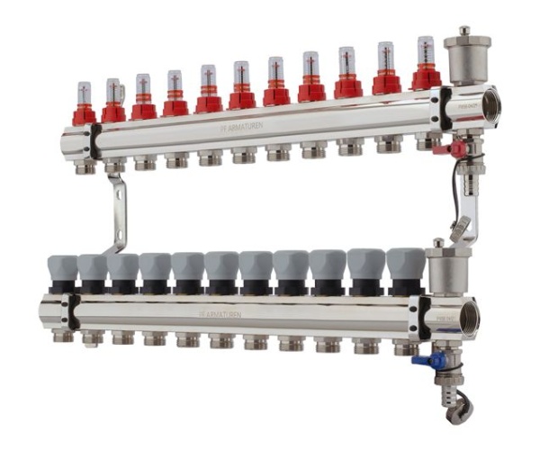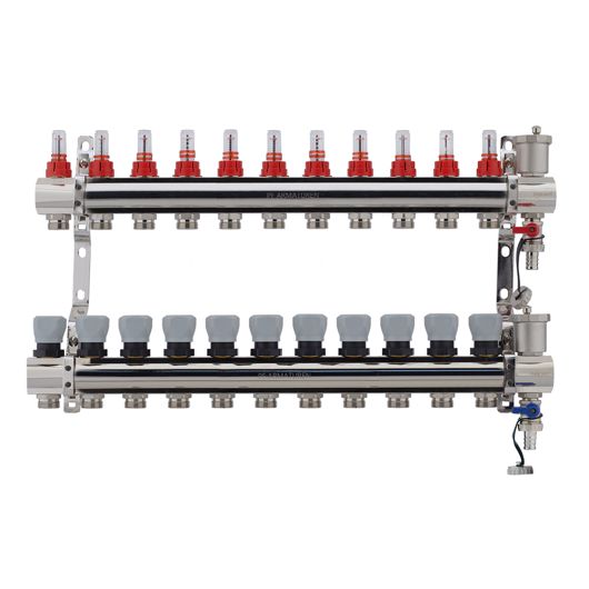 Коллекторный блок в сборе с расходомерами 1" х 3/4"ш (11 вых.)
