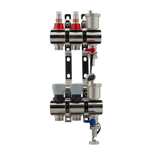 Коллекторный блок в сборе с расходомерами 1" х 3/4"ш ( 2 вых.)
