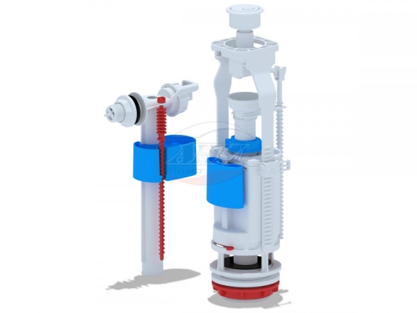 Набор для бачка унитаза. Наливной механизм с боковой подводкой и пластиковой резьбой диаметром 1/2". Сливной механизм белая кнопка с одним режимом слива эконом