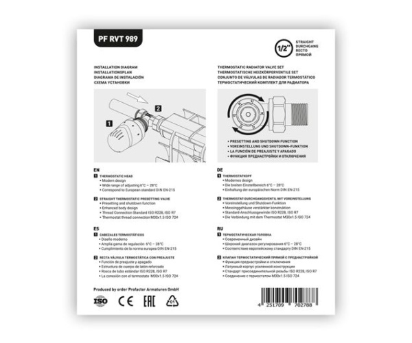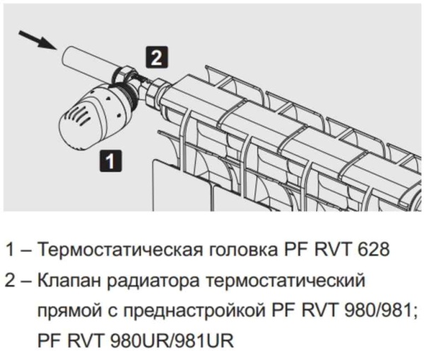 – клапан термостатический прямой с преднастройкой PF RVT 980;