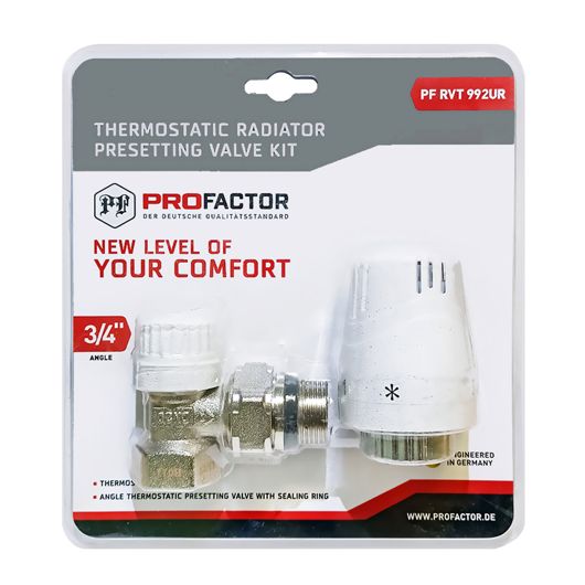 Комплект радиатора термостатический PROFACTOR предназначен для подключения отопительных приборов и плавного регулирования теплового режима в помещении за счет изменения расхода теплоносителя в отопительных системах, может использоваться в однотрубных и двухтрубных системах отопления. Применение термостатический комплекта позволяет уменьшить потребление тепловой энергии.