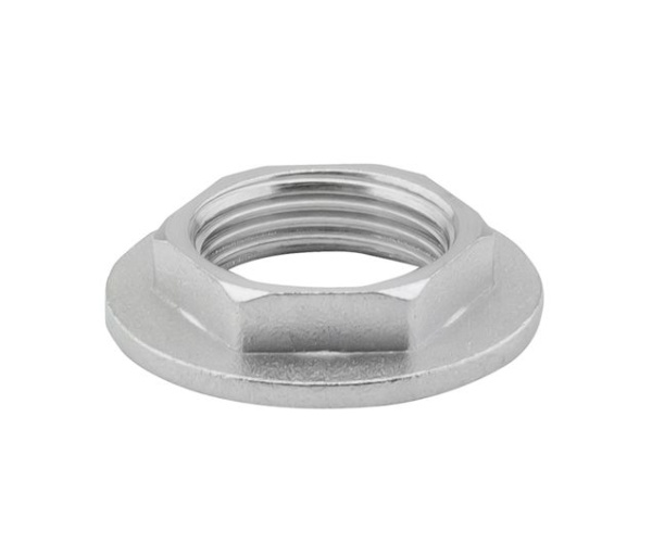 Латунная никелированная гайка для предотвращения самопроизвольного откручивания соединительных муфт. Имеет реборду (выступающую часть).