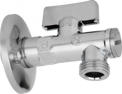 Миникран шаровой латунный, угловой с фильтром для смесителей, хромированный, резьбы наружная - наружная по ISO 228/1.