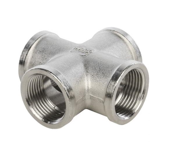 Латунный четырехсторонний фитинг, равнопроходной. Резьба – внутренняя, цилиндрическая трубная.