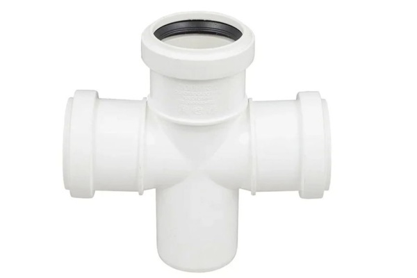 Крестовина белая – фитинг из композиций полипропилена и сополимеров пропилена – в канализационных системах с улучшенным шумопоглощением предназначена для подключения к трубопроводу дополнительных ответвлений в одной (одноплоскостная) или в двух плоскостях (двухплоскостная).