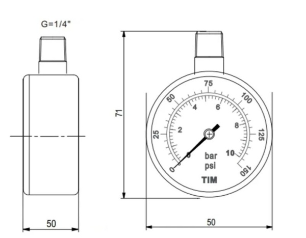 Манометр вертикальный (радиальный) 1/4" (10 bar) (сверху корпуса)