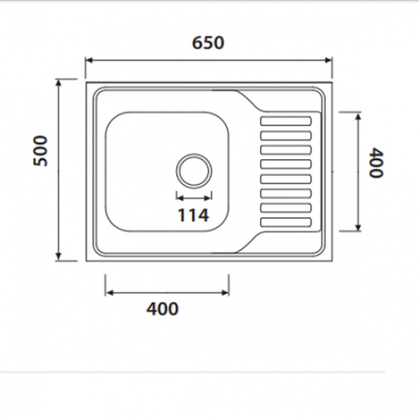 Мойка из нержавейки врезная 650x500*180*0.8 mm хром левая/сифон