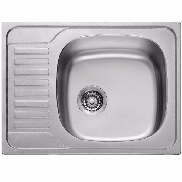Мойка из нержавейки врезная 650x500*180*0.8 mm хром правая/сифон