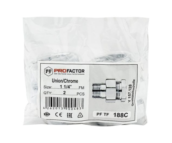 Фитинги резьбовые латунные хромированные PROFACTOR® предназначены для создания разъёмных соединений (в том числе быстроразъемных) при монтаже трубопроводных систем всех типов (систем водоснабжения, отопления, сжатого воздуха и др.).