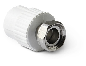 Муфта с накидной гайкой используется для соединения полипропиленовых труб в системах водоснабжения и отопления.