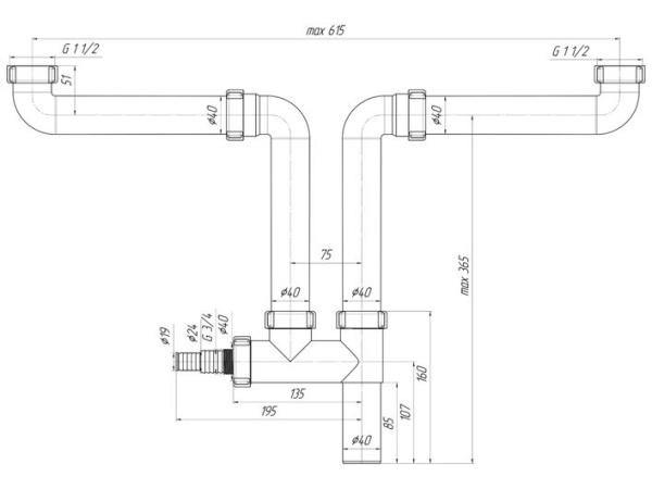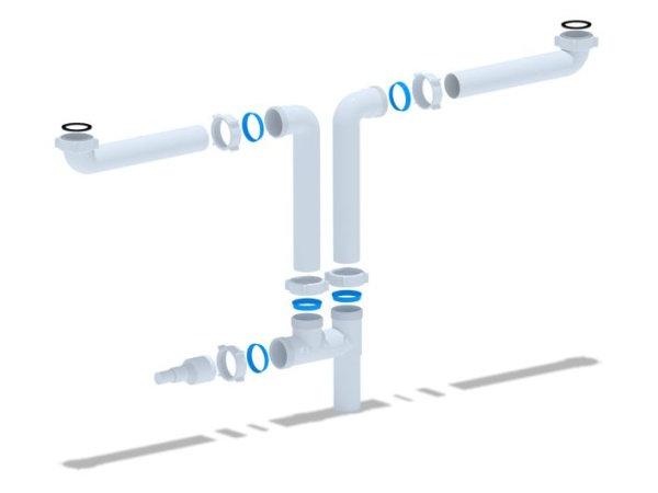 Набор для двойного универсального разноуровнего сифона без выпуска, диапазон изменения 600 мм