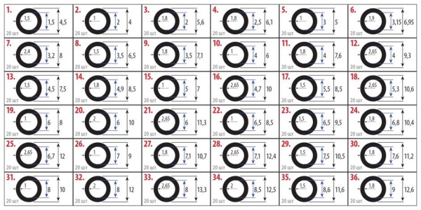 Набор из 720 штук резиновых колец. 36 размеров с внутренним диаметром от 1,5 до 9мм.