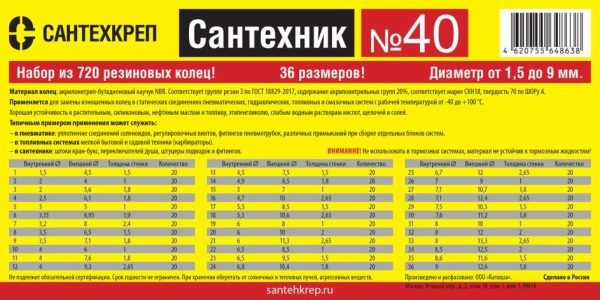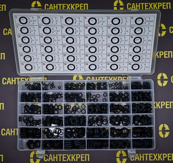 Набор резиновых колец в органайзере (720 колец от 1,5 до 9 мм, 36 видов) Сантехник №40