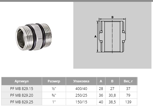 Ниппель с уплотнительными кольцами 1"