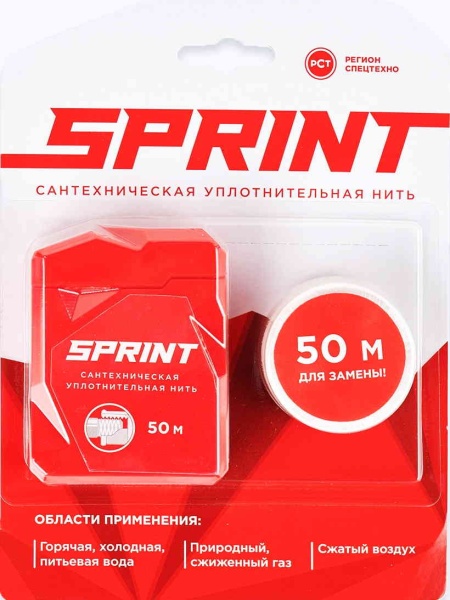 Нить для герметизации резьбы Sprint, 50 м бокс +50 м катушка, блистер