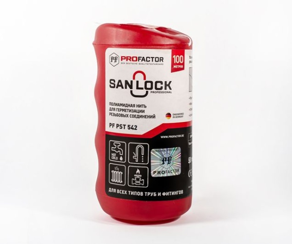Нить для герметизации PF SAN-LOCK® PROFESSIONAL представляет собой полиамидную нить, равномерно пропитанную специальным силиконовым составом. Предназначена для уплотнения резьбовых соединений всех типов труб и фитингов, включая полимерные. Позволяет быстро и надёжно герметизировать узлы с цилиндрической и конической резьбой.