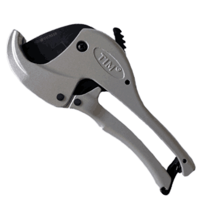 Ножницы с рычажным механизмом открывания. Обеспечивают разрезание под прямым углом пластиковых и металлопластиковых (металлополимерных) труб диаметром до 42 мм. Конструкция инструмента включает нож из нержавеющей стали, храповой механизм, защелку, фиксирующую ножницы в закрытом положении, рычаги открывания. Нож поднимается при разведении рукояток до упора.