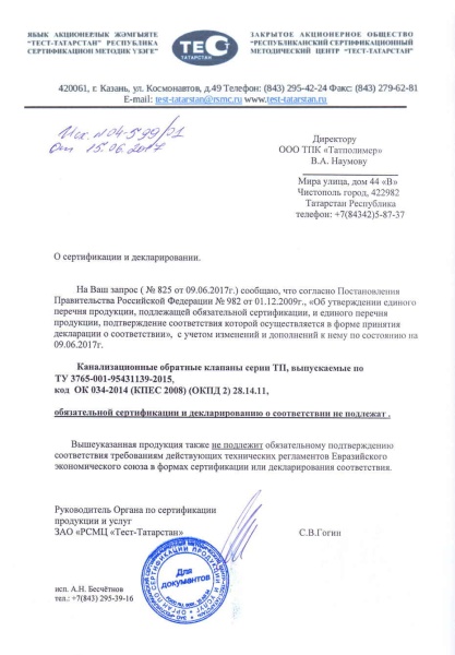 Обратный клапан ПВХ ø110 (красный) ТП-85.100 - ТАТПОЛИМЕР