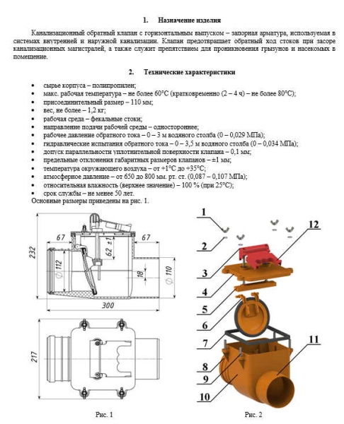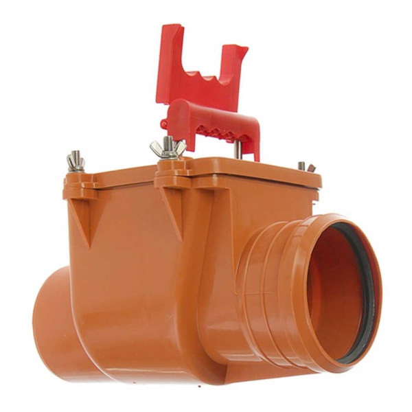 Канализационный обратный клапан с горизонтальным выпуском – запорная арматура, используемая в системах внутренней и наружной канализации. Клапан предотвращает обратный ход стоков при засоре канализационных магистралей, а также служит препятствием для проникновения грызунов и насекомых в помещение.