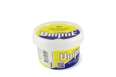 Паста «UNIPAK» применяется вместе с льняными волокнами или уплотняющим льняным шнуром для уплотнения резьбовых соединений в трубопроводных системах для горячей и холодной воды, а также пара под низким давлением. Паста обеспечивает абсолютную герметичность соединения, а также, (в отличие, например, от ФУМ ленты) большую гибкость при регулировке трубных соединений. Угол возможной юстировки соединения не менее 45° без потери герметичности. Применение пасты «UNIPAK» позволяет в будущем легко демонтировать резьбовые элементы оборудования.