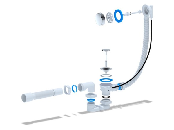 Для ванн с отверстием слива Ø50 мм и отверстием перелива от Ø48 до 56 мм (стандартное отверстие 50 мм)