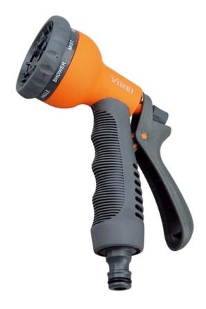 Пистолет для полива выполнен из высокопрочного пластика. Ручка выполнена из мягкого пластика. Насадка имеет 8 режимов полива. Курок имеет фиксатор. Евро соединение, подходит для большинства коннекторов.
