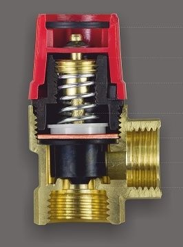 Предохранительный сбросной мембранный клапан с фиксированным порогом срабатывания. Корпус из латуни. Пластмассовый колпачок для ручного сброса. Никель-хромированная стальная пружина. Герметизация от внешней среды - Мембрана. Максимальная рабочая температура 95 °C. Угловое подключение.