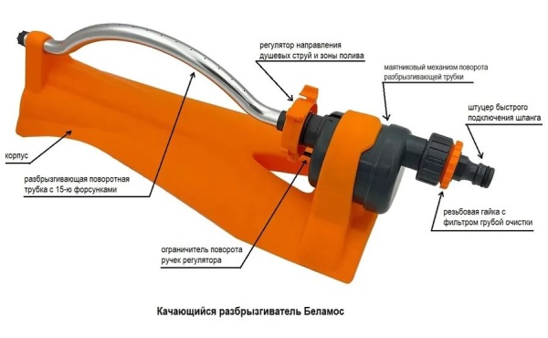 Качающийся разбрызгиватель Беламос YM301, иначе – осциллирующий (колеблющийся) дождеватель.