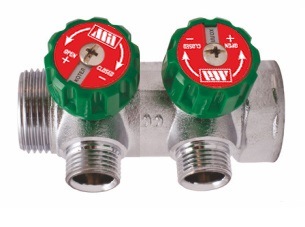 Регулирующий коллектор 90° под прокладку 3/4" х 1/2" (2 вых.) MILLENIUM MKRP23412