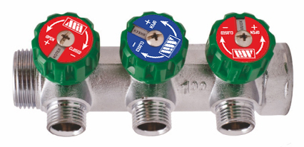 Регулирующий коллектор 90° под прокладку 3/4" х 1/2" (3 вых.) MILLENIUM MKRP33412