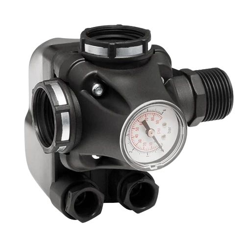 PM/5-3W - оригинальное устройство, соединяющее реле давления РМ/5, пятивыводной штуцер и манометр. Устройство облегчает процесс монтажа автоматических насосных станций водоснабжения.