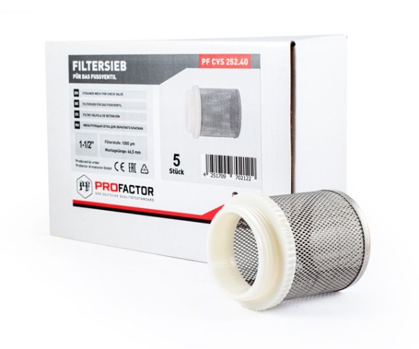 Фильтрующая сетка для обратного клапана PROFACTOR® предназначена для предварительной очистки воды от механических примесей (мусора, песка, ржавчины и др.), применяется в сборе с обратным клапаном.