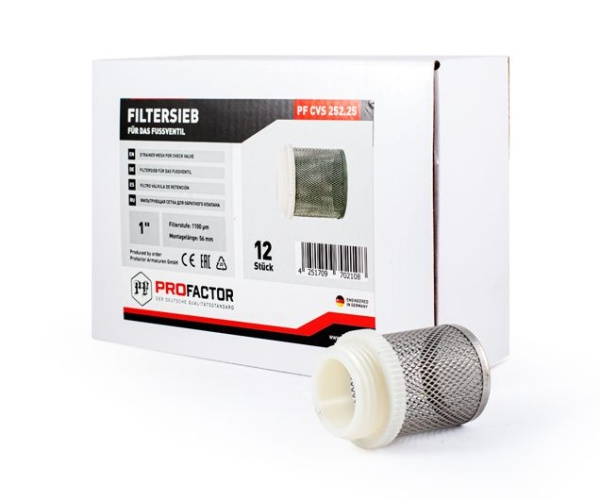 Фильтрующая сетка для обратного клапана PROFACTOR® предназначена для предварительной очистки воды от механических примесей (мусора, песка, ржавчины и др.), применяется в сборе с обратным клапаном.