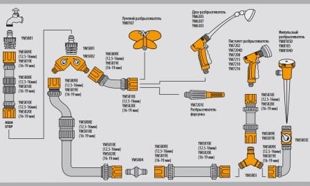 Коннекторы соединители и прочие объединяющие комплектующие – это удобный способ быстро смонтировать различные элементы системы полива, конструкция которых позволяет им состыковываться в одно действие. Данные изделия обычно изготавливаются из мягкого пластика в Тайване. Они обеспечивают высокую герметичность, благодаря чему практически полностью исключается утечка воды из системы.