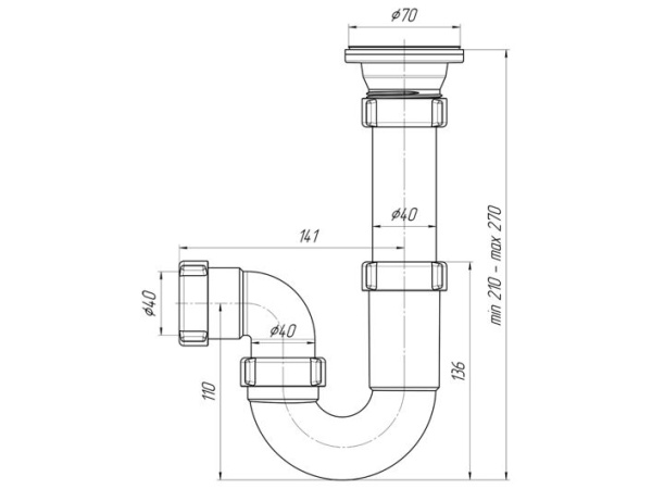 • Сифон сливной АНИ пласт D0100 для кухонных моек с диаметром сливного отверстия 50-60 мм