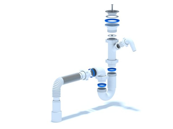 • Сифон сливной АНИ пласт D1015 для кухонных моек с диаметром сливного отверстия 50-60 мм