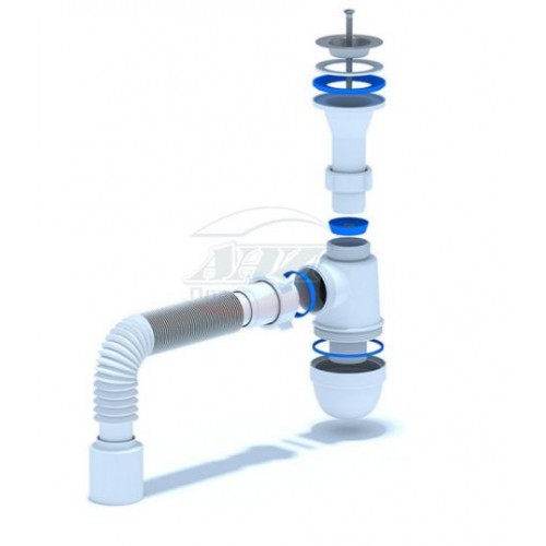 Сифон сливной АНИ пласт C2010 для умывальников и раковин с диаметром слива 40-52 мм