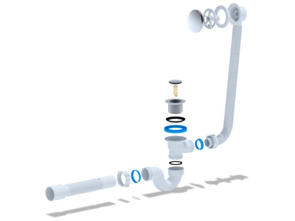 Для ванн с отверстием слива ø50 мм и отверстием перелива от ø48 до 62 мм (стандартное отверстие 50 мм)