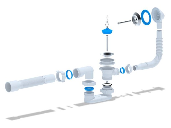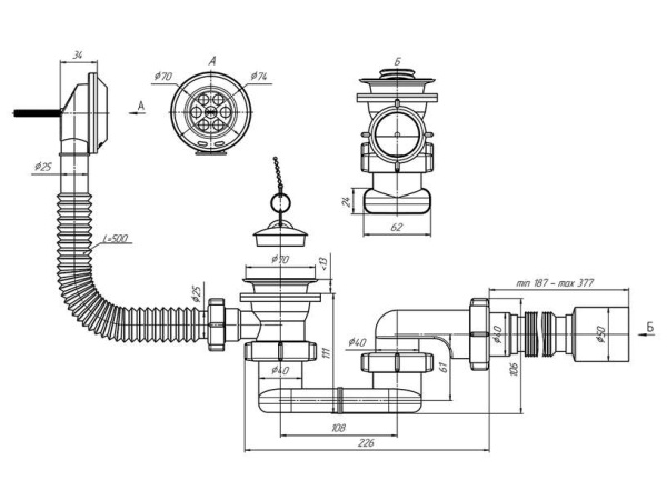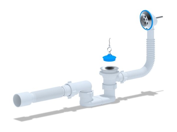 Для ванн с отверстием слива ø 50 мм и отверстием перелива от ø 36 до 63 мм (стандартное отверстие 50 мм)