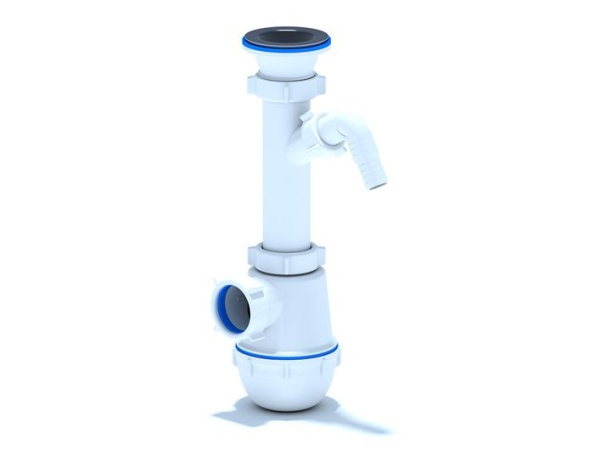 Сифон сливной АНИ пласт А1000 для кухонных моек с диаметром сливного отверстия 50-60 мм, с выпуском и отводом для бытовой техники