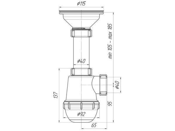 • Тип сифона: бутылочный, с увеличенным корпусом