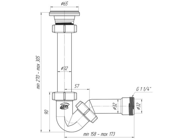 Сифон АНИ 1 1/4"*32 прямоточный