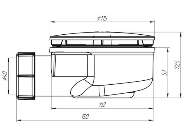 Сифон для душевого поддона 1.1/2 х 90, h 53 мм, вальцовка