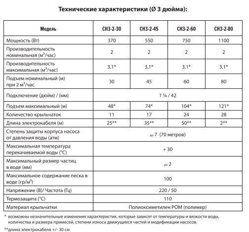• Ном.подъем - 80 метров (при 2 м³/час)