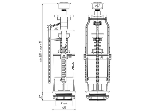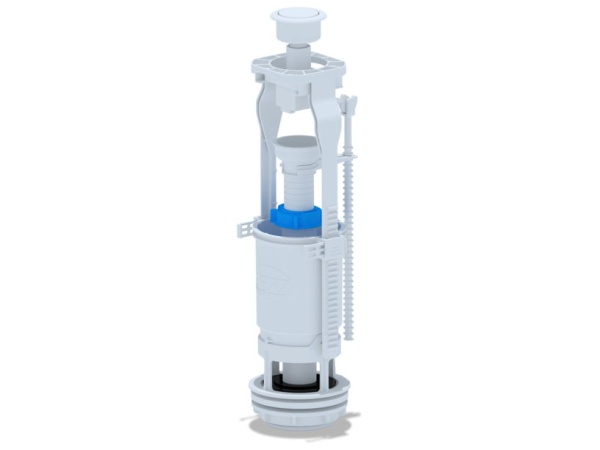Сливной механизм бачка унитаза АНИ пласт WC7030 эконом, пластиковая белая кнопка, с одним режимом слива. Регулировка по высоте 290-410 мм. Отверстие для кнопки слива в крышке бачка 40 мм, посадочное отверстие сливной арматуры 60 мм.